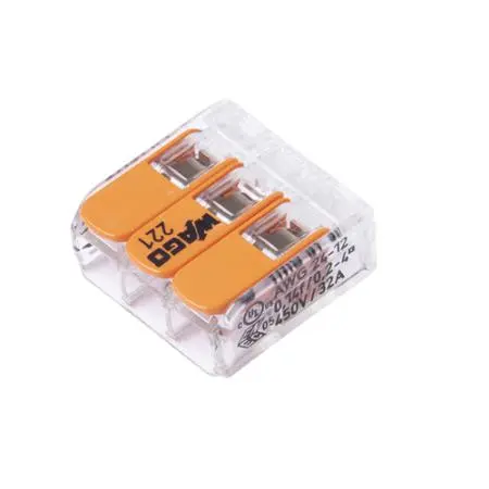 Wago 221 Series Lever-Nut Connectors 4mm 3 Conductor 24-10 Ga.